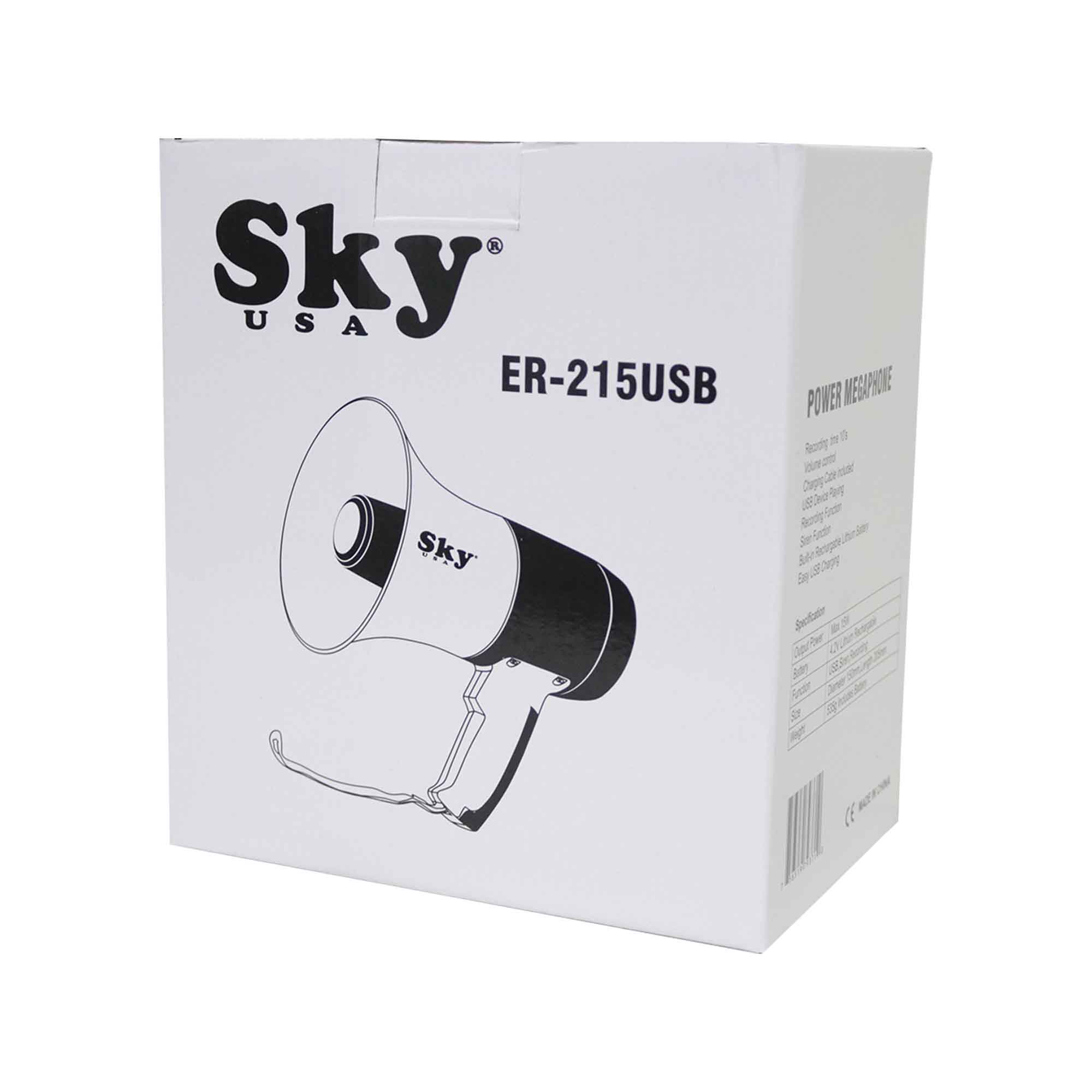 Megáfono recargable Sky de 15W con USB y sirena